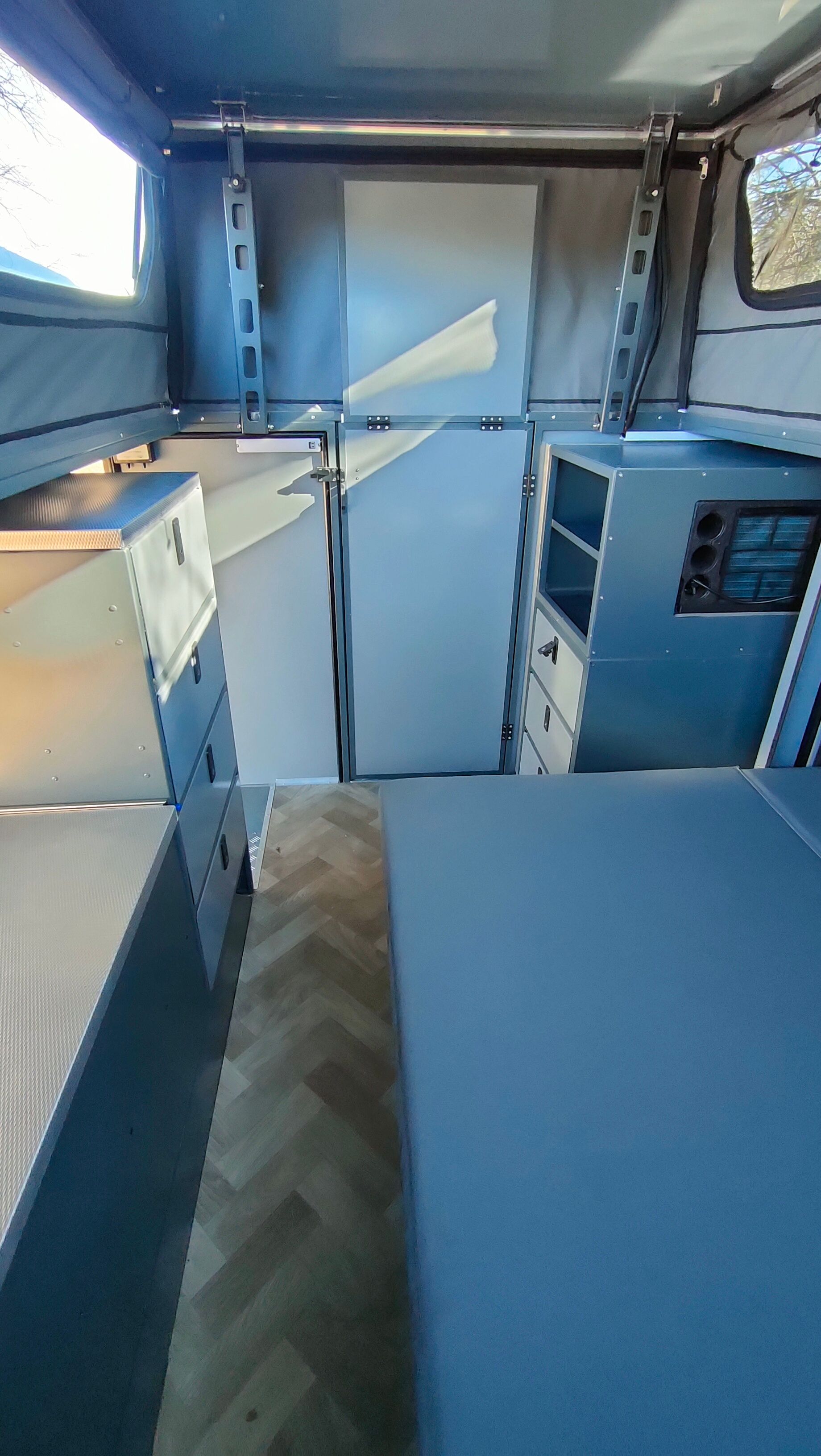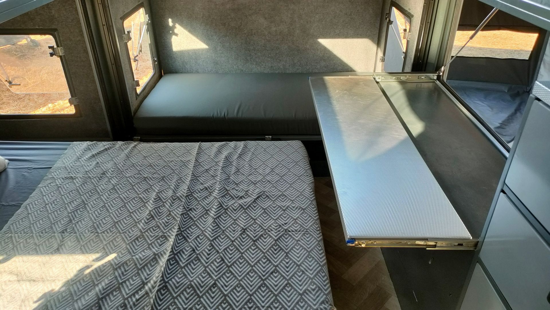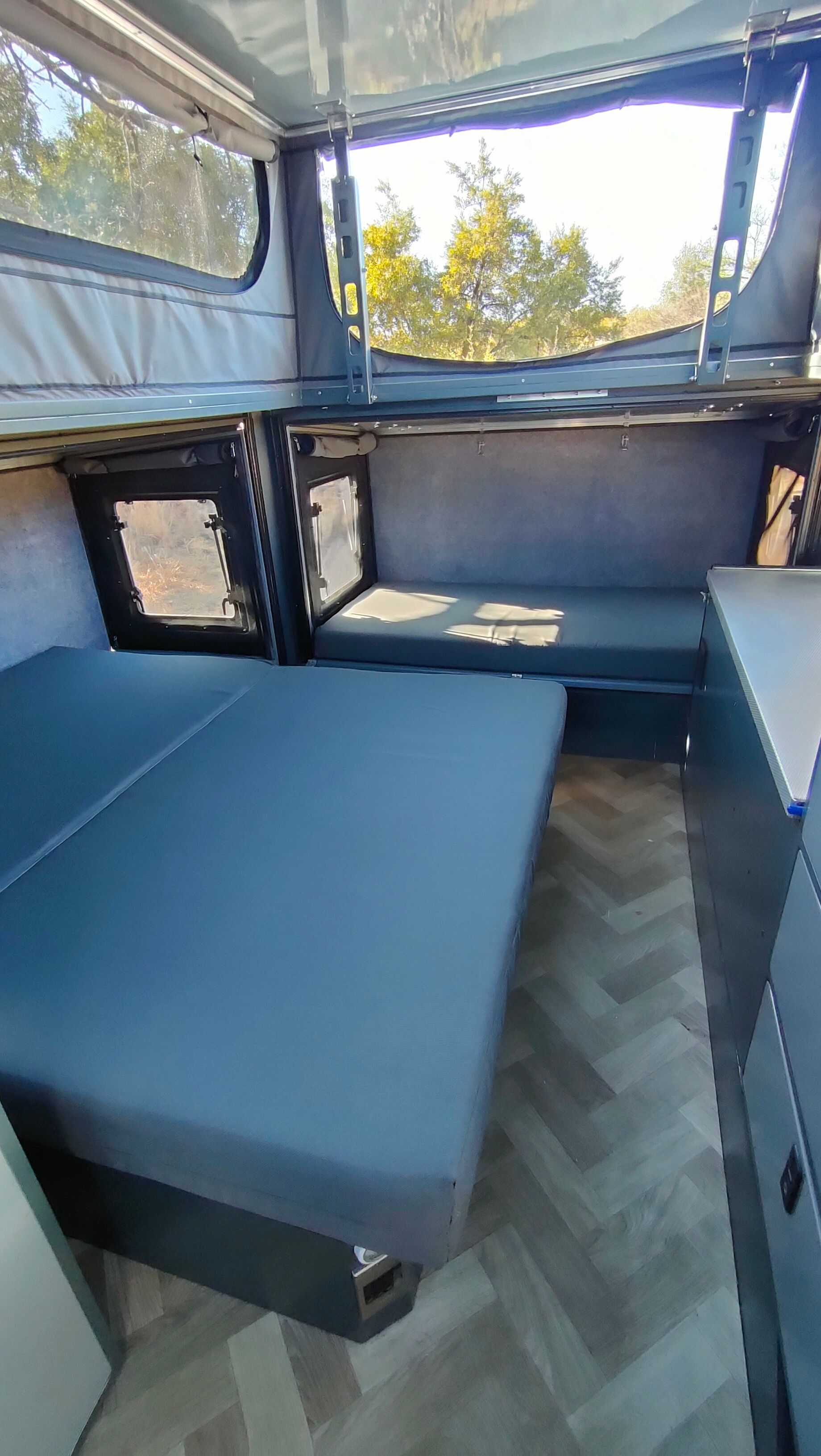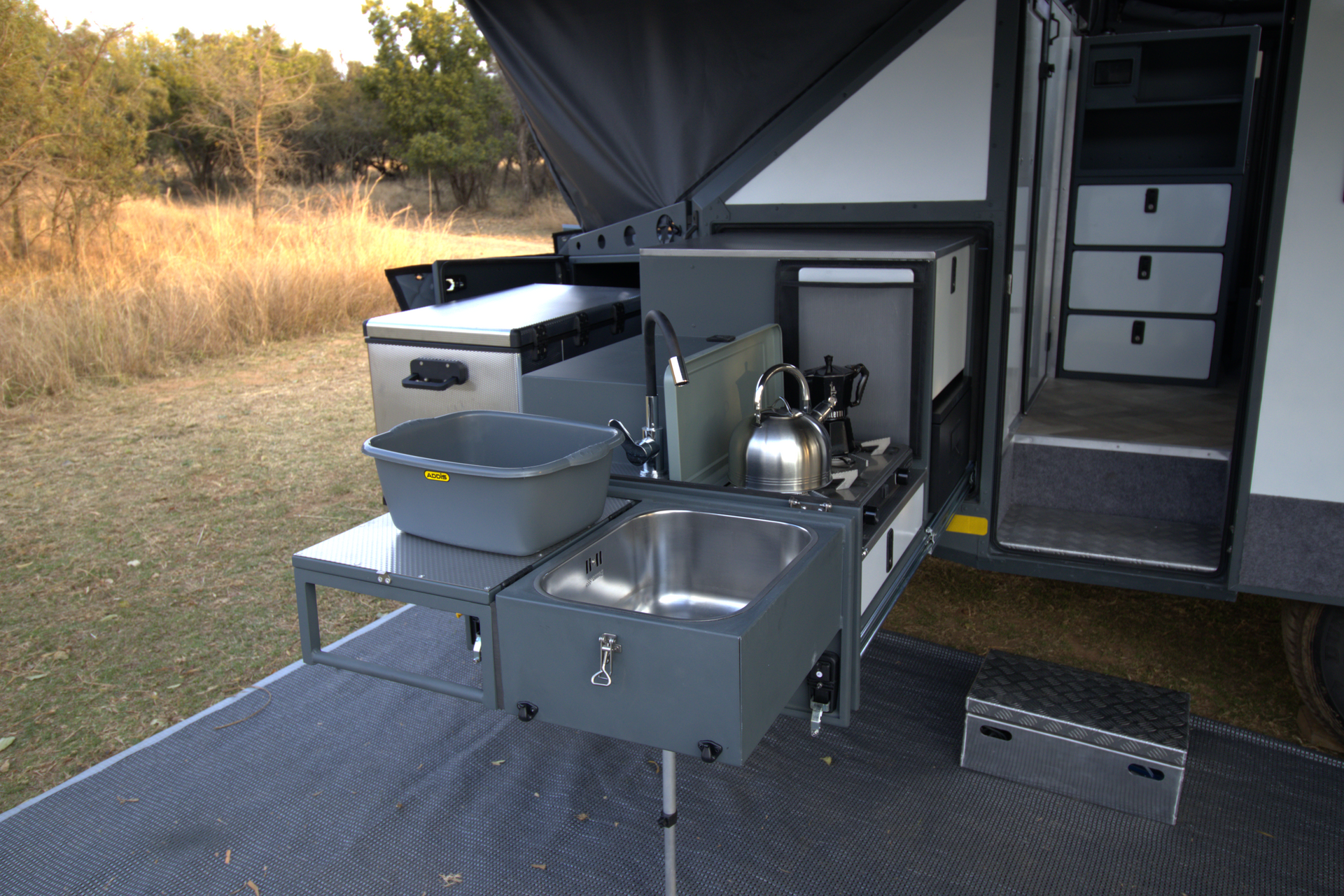 The CX3 measures just 5.3m from drawbar to spare wheel, 2m wide, 2.2m high, and weighs around 1 ton. Good luck finding another off-road caravan with these compact dimensions that offers everything the CX3 does!